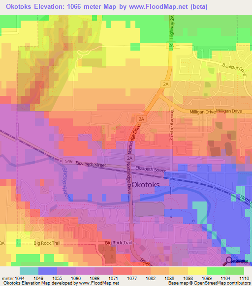 Elevation of Okotoks,Canada Elevation Map, Topography, Contour